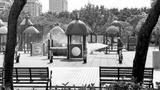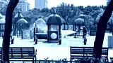 Worker fumigating playground in Daan Park, Taipei during Covid