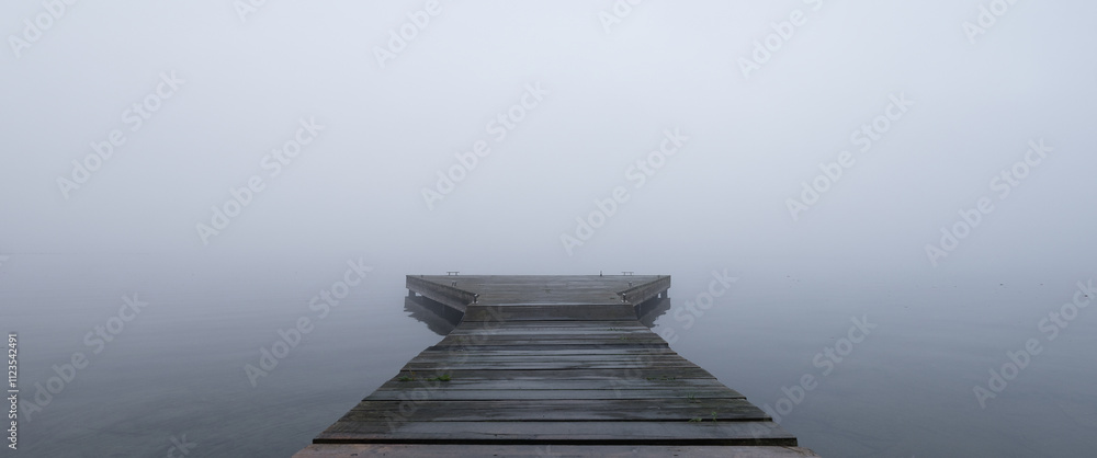 LANDSCAPE BY THE LAKE - Wooden pier on a misty morning