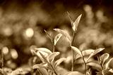 Green tea leaves and pekoe buds on tea plantation