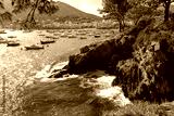 Cadaques Bay with boats and Church of Santa Maria, Catalonia, Spain