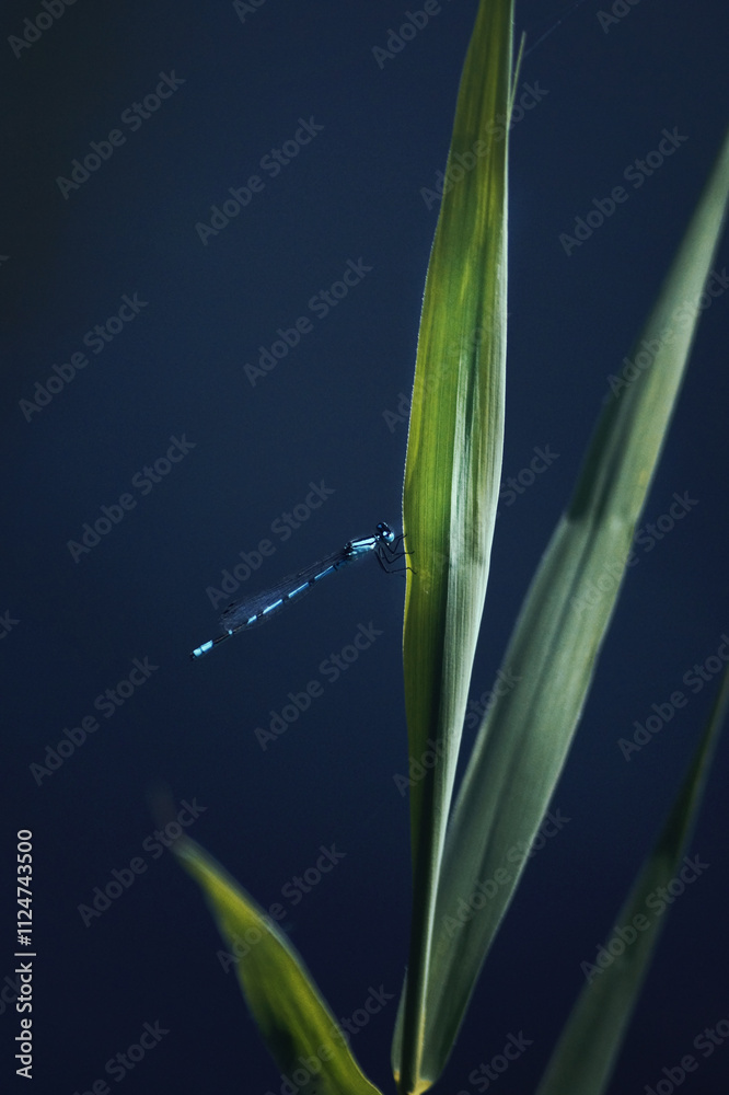 dragonfly on the lake on the tall green grass