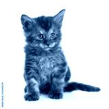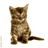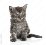 Cute maine coon kitten sitting in front view and looking away. isolated on white background
