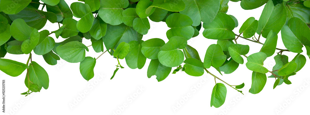 Close-Up of Green Leaves on a Branch on white background. png file.