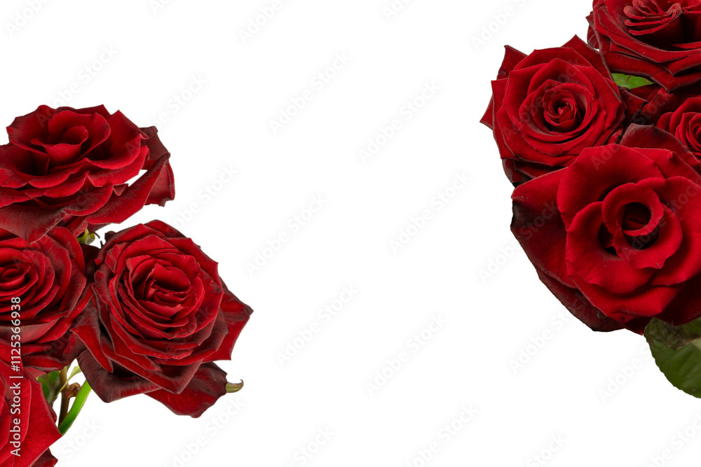 A bouquet of beautiful red roses isolated on a white background.