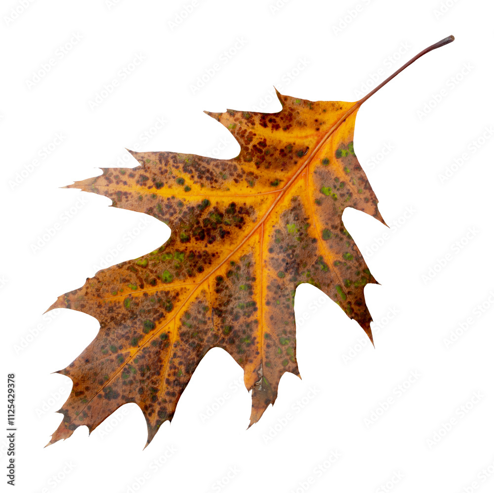 Yellow autumn leaf oak isolated on transparent background.
