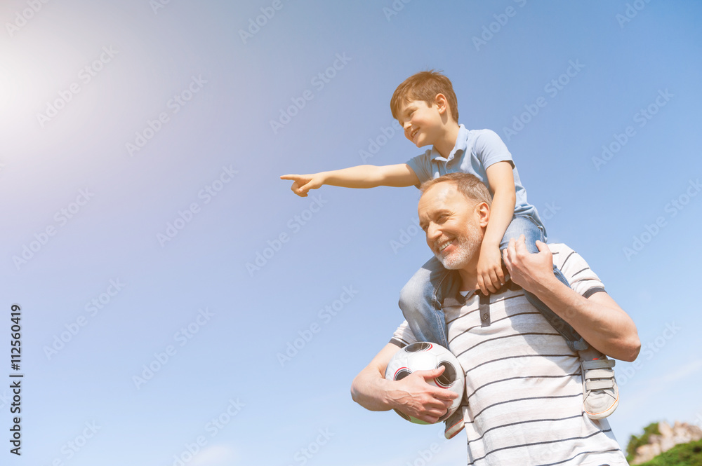 Cute grandson and grandparent are playing in park