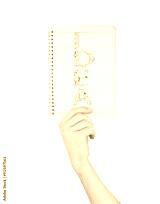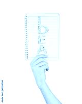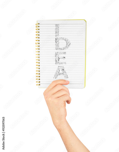 Note, a hand holding a notebook with blank space for write note,
