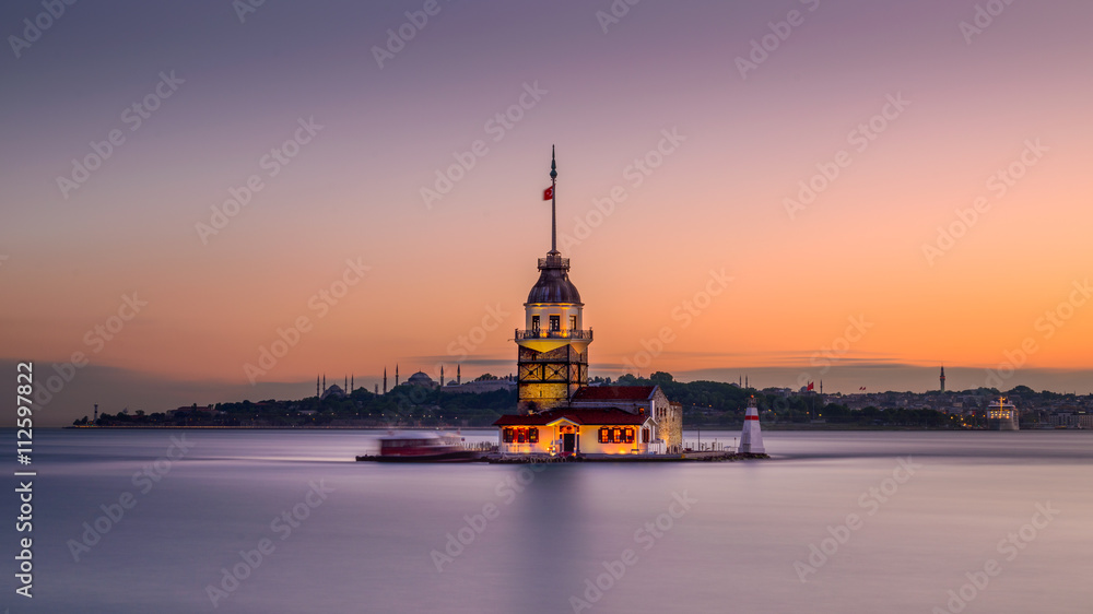 Twilight at Maiden's Tower in Istanbul, Turkey