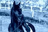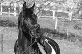 A beautiful black dressage horse portrait