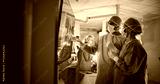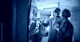 Caucasian Male and Female Surgeons Analyze Scans on a Digital Monitor, Planning Surgical Strategy in a High-tech Operating Room. Colleagues Working Together, Preparing for Surgery