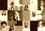 Creative collage made of different people, men and women of various age and nationality, posing with smile on colorful background. Concept of human emotions, race, equality, rights, diversity