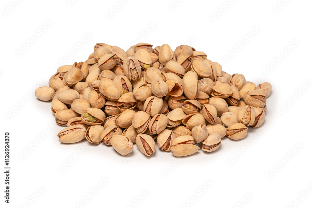 Tasty pistachios isolated on a white background.