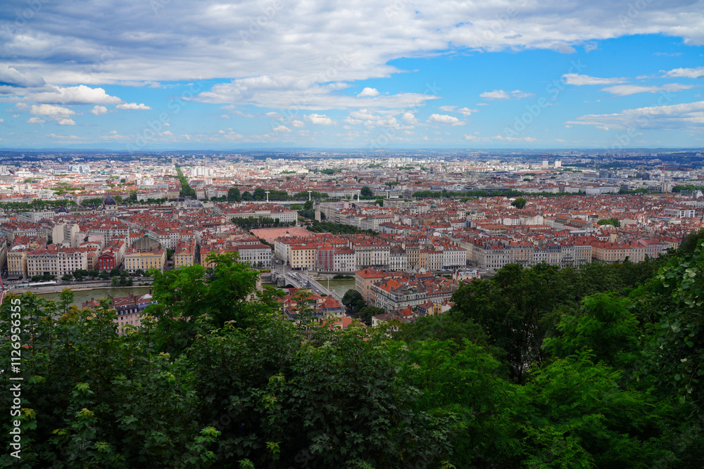 Landscape view of downtown Lyon seen from the Basilica of Notre Dame of Fourvière.