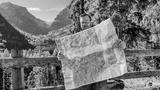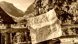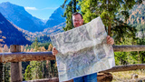 A man in a mountain landscape holds a map, highlighting adventure and navigation during a hiking trip Dolomite Alps