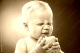 Baby squinting eyes while licking lemon