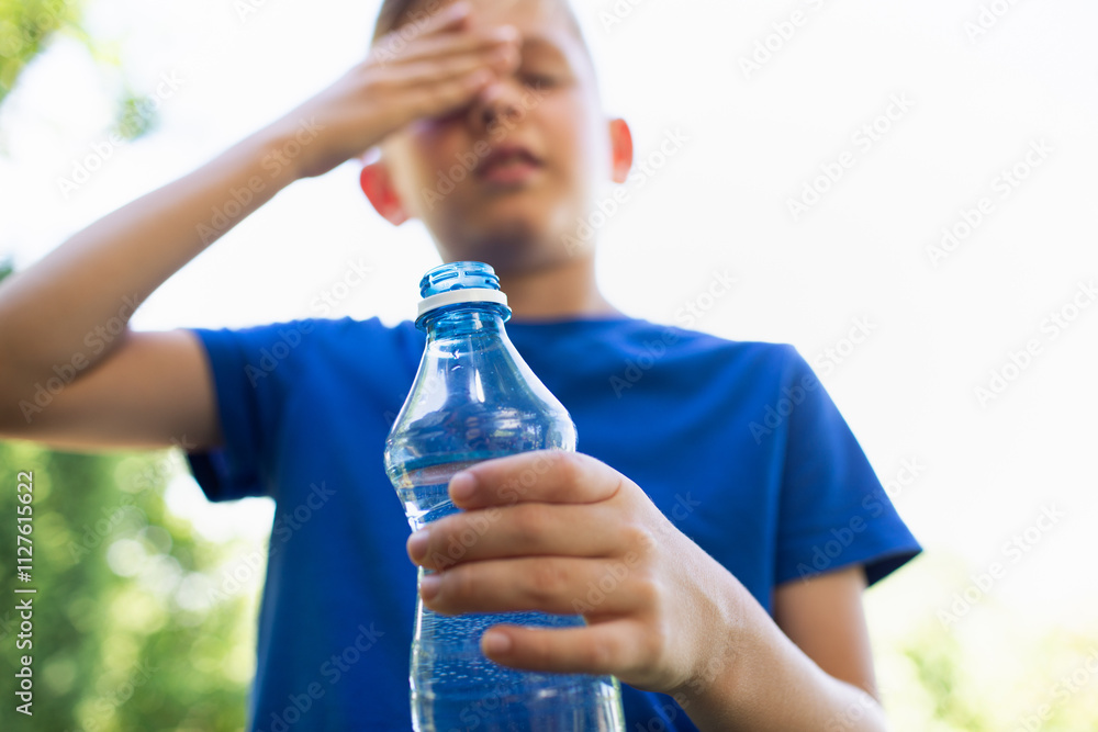 Child drinking water in the heat of the day, dealing with summer heat wave