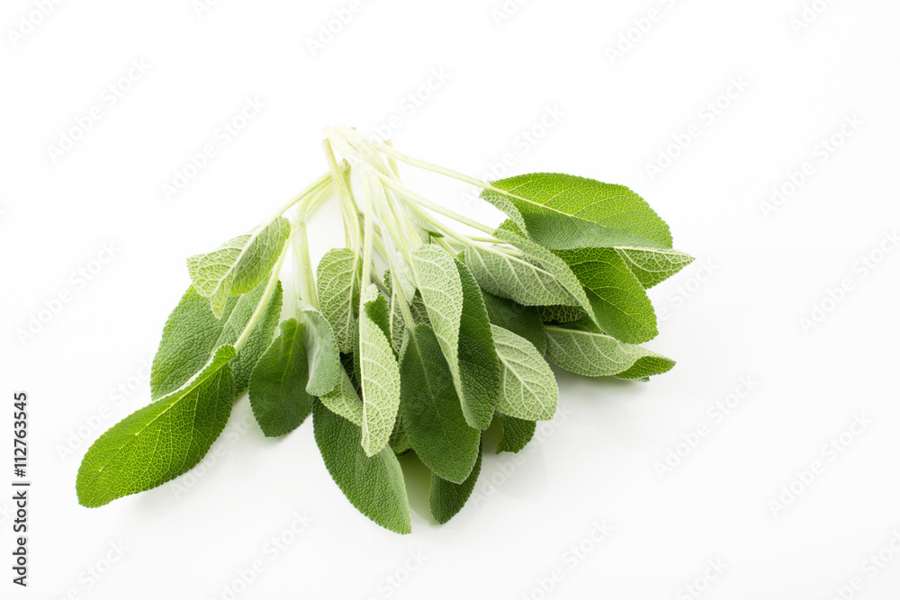 Salbei, Blätter, weißer Hintergrund