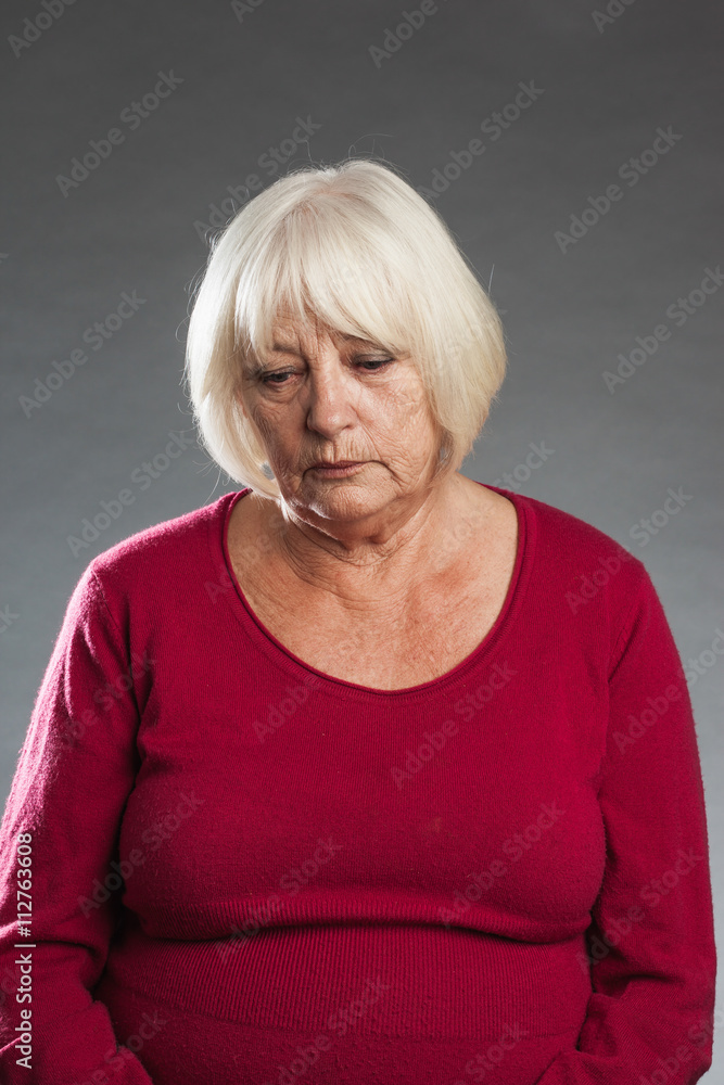 Sad, depressed - female senior portrait series on grey backgroun