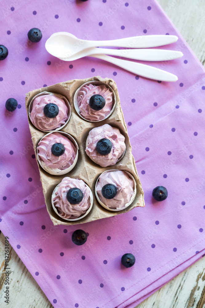 Mit Heidelbeersahne gefüllte Eier, Osterbrunch