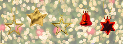 Christmas bauble hanging decoration with bokeh light background celebration holiday banner template