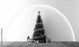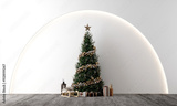 Home and decor and living room interior design and white wall pattern background and christmas tree decor. 3d rendering