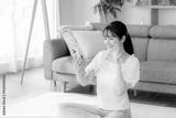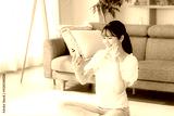 部屋でスマホを操作する若い女性