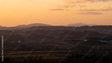 Colorful sunset in the Krkonoše foothills, Zvíčina, Czech Republic.