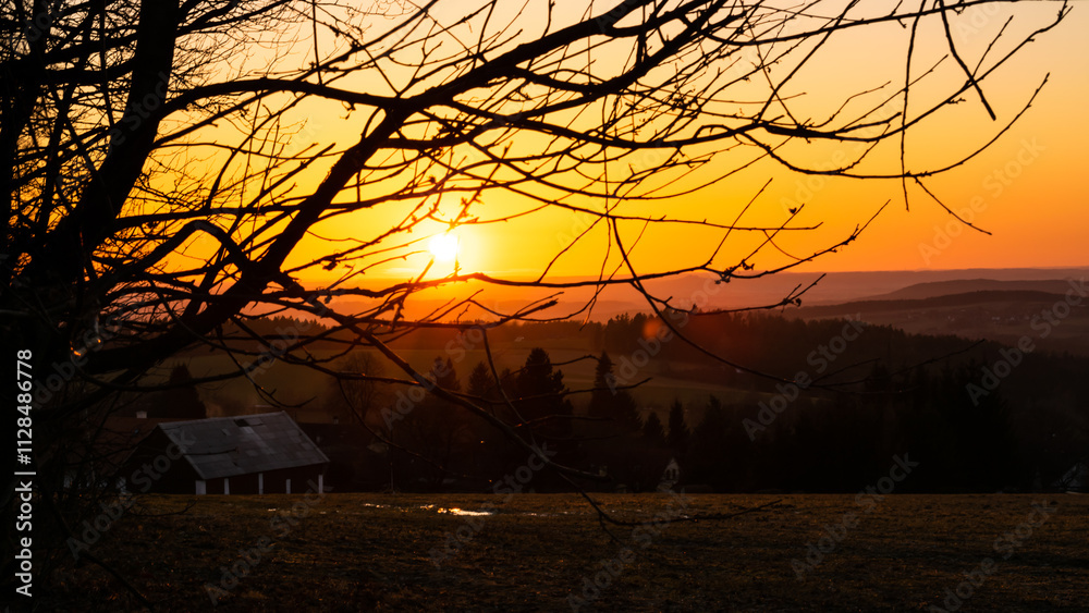 Colorful sunset and Czech landscape.