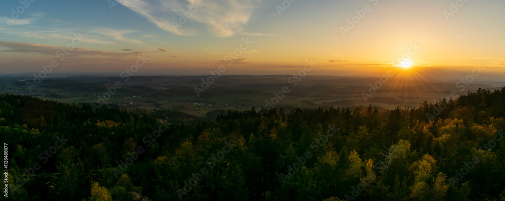 Colorful sunset in the Krkonoše foothills, Žaltman, Czech Republic.