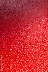 Smooth red surface covered with rain drops