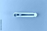 manual rotary circle cutter on blue background, top view, circle cutter tool has a sliding mechanism with measurements in centimeters, allowing for precise cutting of circles of different sizes