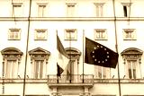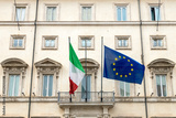 Palazzo Chigi, seat of the Italian government, with Italy and EU flags in Rome