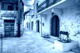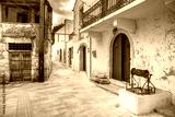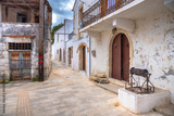 Old narrow street with stone arch at Agios Konstantinos, Rethimno, Crete, Greece.