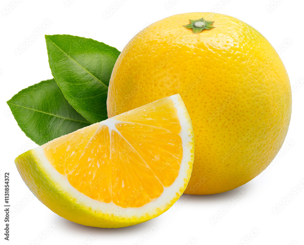 Orange fruit isolated on white background, Citrus Sinensis Orange with slices on White Background With clipping path.