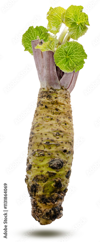 Fresh Japanese Wasabi root isolated on white background. Spice Wasabi root on white background with clipping path.