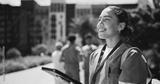 Happy woman, vision and nurse with tablet for internship, med school or healthcare campaign at campus. Female person, medical student or junior with smile on technology for dream, research or study