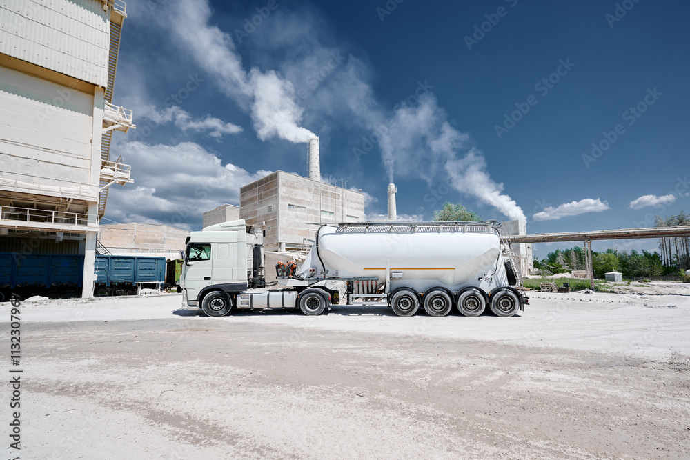 Vehicle for lime cement and flour against smoking chimneys