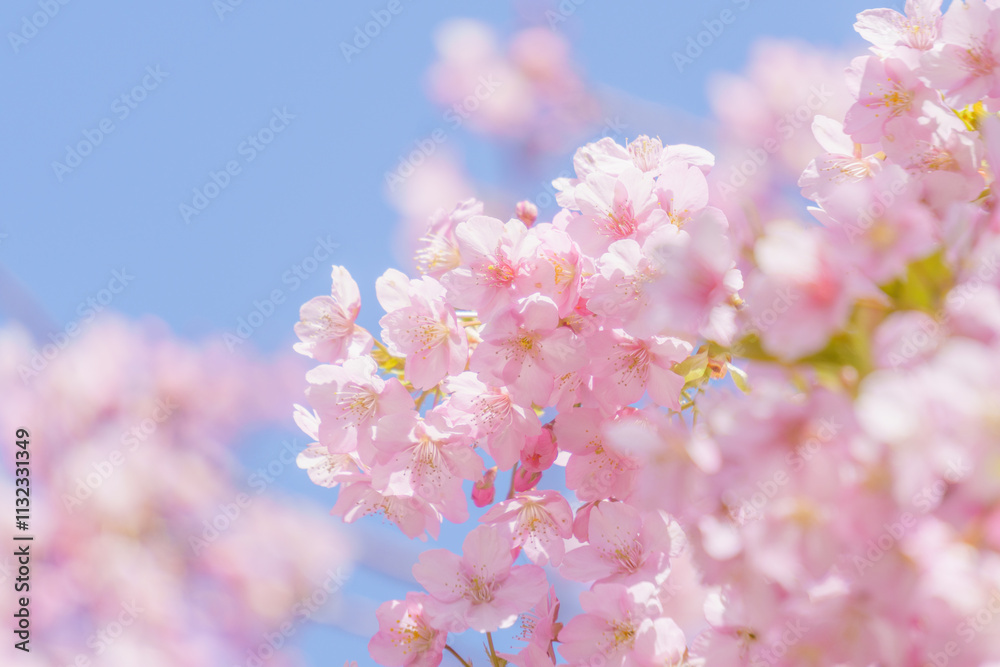 河津桜と青空の背景