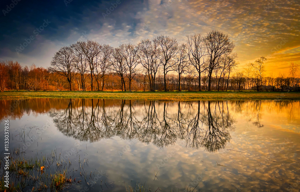 Trees reflection in water