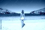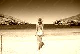 Young woman on the remote beach. Summer vacation and active lifestyle concept