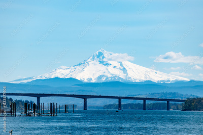 Mt. Hood With Interstate Bridge Over Oregon and Washington Columbia River