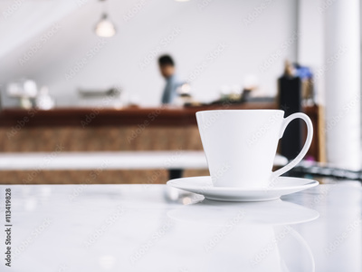 Coffee cup on table with blurred people in Restaurant shop cafe