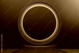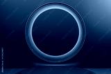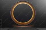 Abstract modern stage with illuminated round circle on dark matte background. Minimal luxury design concept for premium product display. 3D Rendering