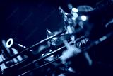 Symphony orchestra on stage.