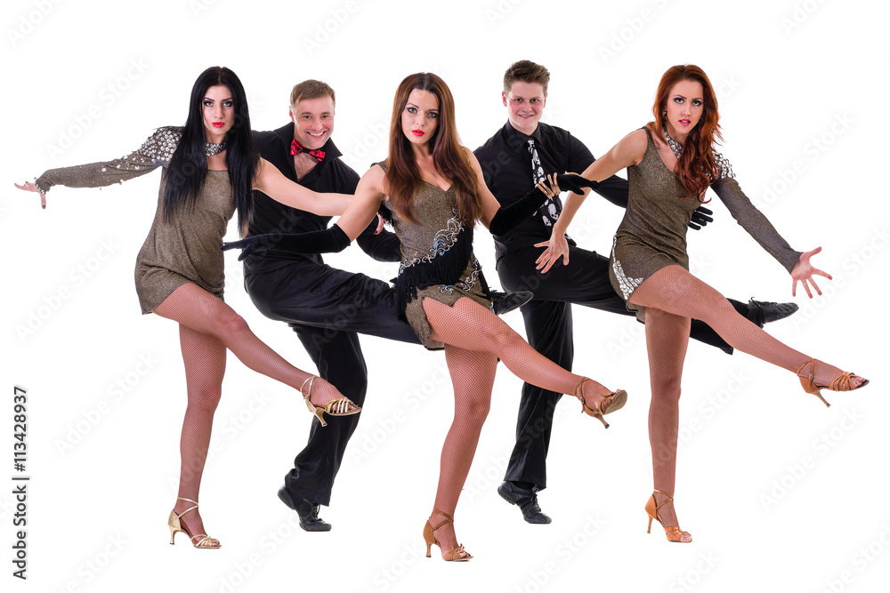 Cabaret dancer team dancing. Isolated on white background in full length.