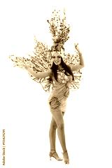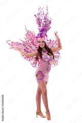 carnival dancer woman dancing against isolated white
