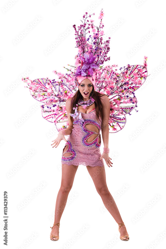 carnival dancer woman dancing against isolated white