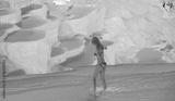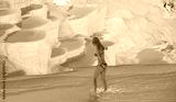 Beautiful blond girl walking on the turqouise pool of travertines - Pamukkale, Turkey