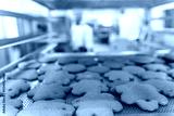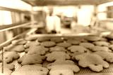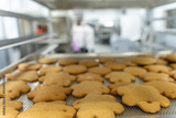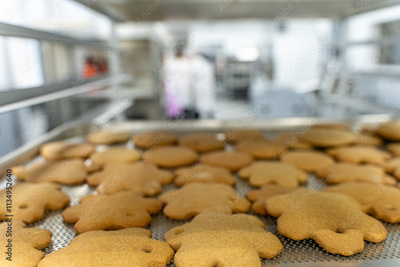 A variety of Christmas cookies or gingerbread on the production rack in the bakery workshop.