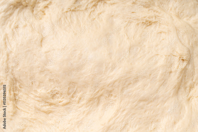 Texture of rolled dough. Background of the dough for baking. Fresh raw dough for pizza or bread baking. Close-up fermented doughs, homemade. High quality photo